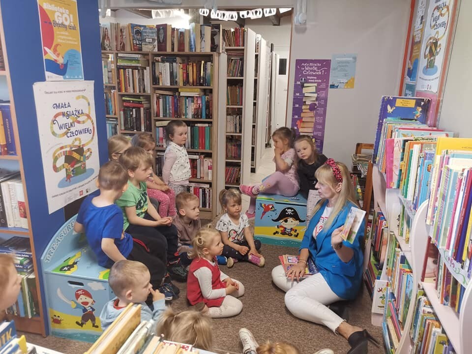 Grupa Maluchów " Motylki" zrobiła nam miłą niespodziankę przychodząc do nas z pięknymi życzeniami i upominkami. My natomiast zaprezentowałyśmy dzieciom nasze królestwo książek, co zrobiło na nich ogromne wrażenie, gdyż dla większości dzieci była to pierwsza wizyta w bibliotece. Oczywiście nie zabrakło czytania książek i pogadanki o bibliotece i ulubionych książeczkach. Było to super spotkanie, bardzo dziękujemy za pamięć i odwiedziny!
