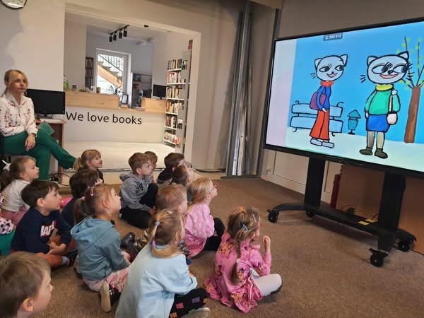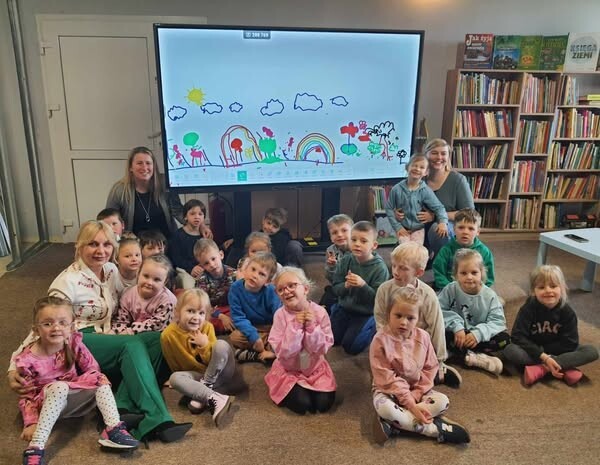Głównym tematem spotkania była wiosna, która póki co nas nie rozpieszcza. Dzieci dowiedziały się jakie są pierwsze oznaki wiosny, jakie ptaki przylatują i jakie zakwitają kwiaty. Rozmawialiśmy również o owadach, które budzą się z zimowego snu. Następnie dzieci obejrzały bajkę "Kicia Kocia i wiosna'. Na zakończenie natomiast każdy z przedszkolaków mógł na monitorze interaktywnym narysować jeden z symboli wiosny w wyniku czego, powstała piękna, wielobarwna ilustracja. Było to radosne, wiosenne spotkanie, które na pewno odczaruje wiosnę.