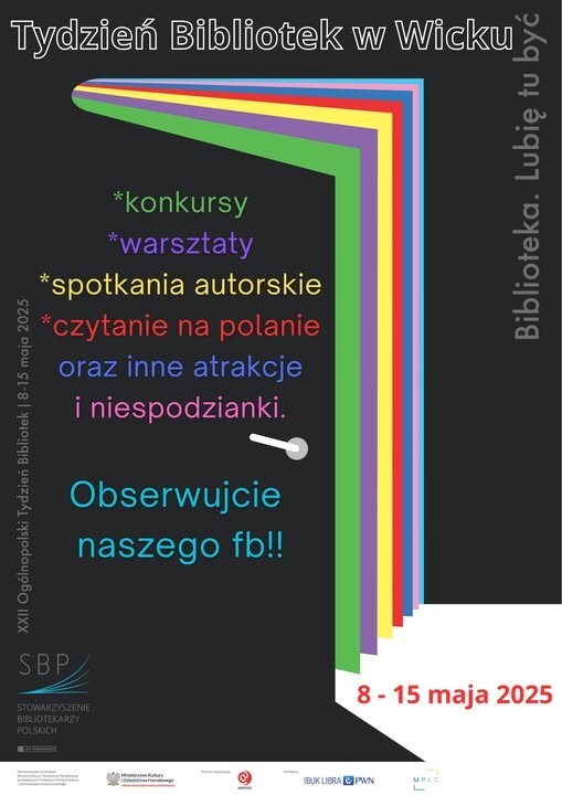 Tydzień Bibliotek 8 - 15 maja 2025r. Serdecznie zapraszamy, będzie to na pewno tydzień wzmożonej aktywności, który upłynie pod hasłem "Biblioteka. Lubię tu być"