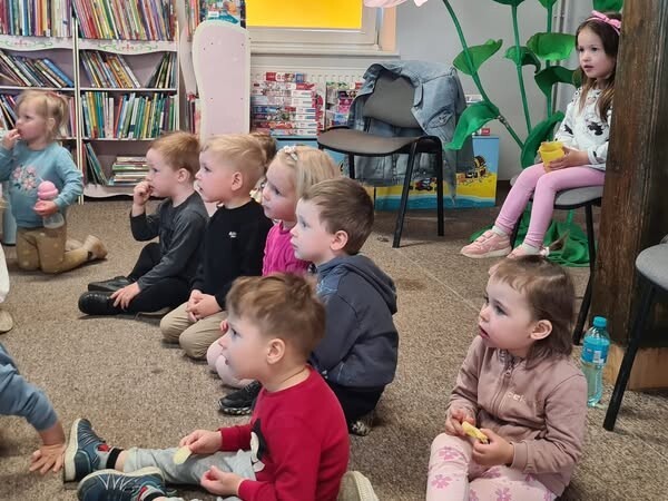 Było to bardzo radosne spotkanie, dzieci wyszły uśmiechnięte i obiecały, że wrócą po książki z rodzicami. Zapraszamy i dziękujemy!