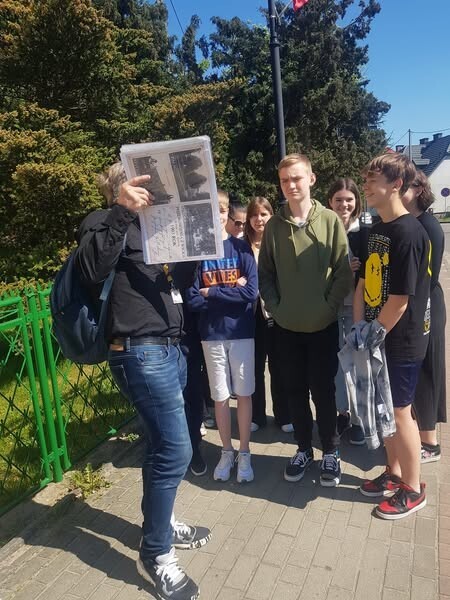 Oczywiście zaczęliśmy od kamienia granicznego, który obecnie znajduje się przed budynkiem GOKiS-u. Młodzież poznała też historię swojej szkoły, która była pałacem należącym do rodziny Wejherów. Dowiedzieli się co mieściło się w pomieszczeniach obecnej biblioteki, a także gdzie była mleczarnia, poczta, restauracja, stacja CPN i wiele innych ciekawych rzeczy związanych z historią Wicka.