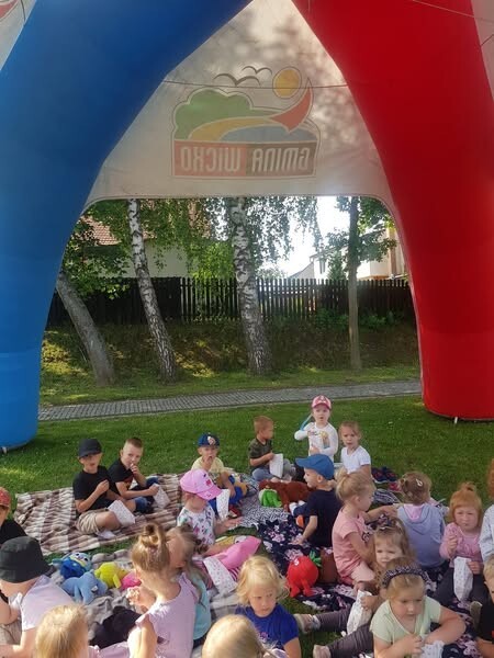 Dziś pracownicy Biblioteka Publiczna Gminy Wicko i Gminny Ośrodek Kultury i Sportu w Wicku zorganizowali wakacyjne spotkanie na polanie dla przedszkolaków.